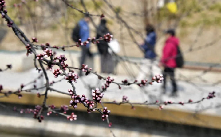 跟着气温冉冉回升,北京市向阳区二谈沟河六里屯段的“山桃花溪”近百株山桃花已不息怒放,眩惑不少市民搭客前来踏青赏花。新华社记者 李欣 摄