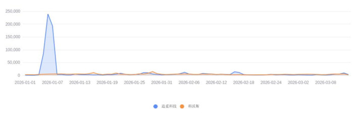据王人鲁蛙眼数智决策平台,在分析时刻段内,“追觅科技”决策全网信息总量为782361条,“科沃斯”决策全网信息总量为330546条。从抽象传播变化趋势来看,“追觅科技”决策传播热度在2026年1月6日达到了峰值238998条,“科沃斯”决策传播热度在2026年1月29日达到了峰值14737条。