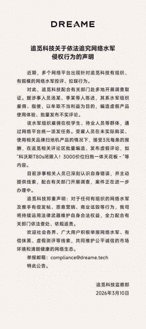 追觅科技声明