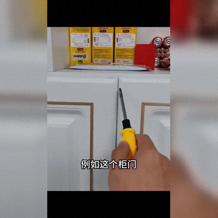 调柜门只需一个口诀:后边的螺丝调前后,中间的螺丝调傍边。举例这个柜门,左边低右边高,咱们调低的。