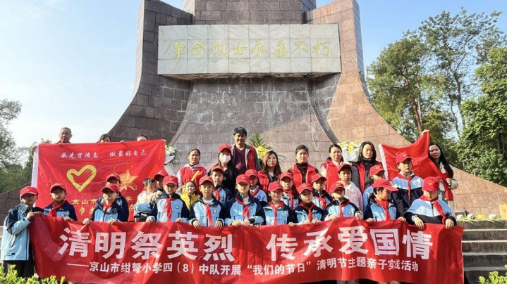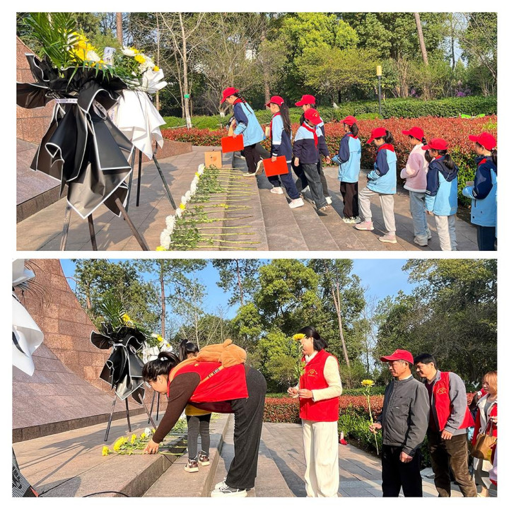 3月28日上昼,春风拂面,京山市绀弩小学四(8)中队23名队员及家长志愿者走进文峰公园义士陵寝,开展“辉煌祭英烈·传承爱国情”辉煌节主题履行举止。